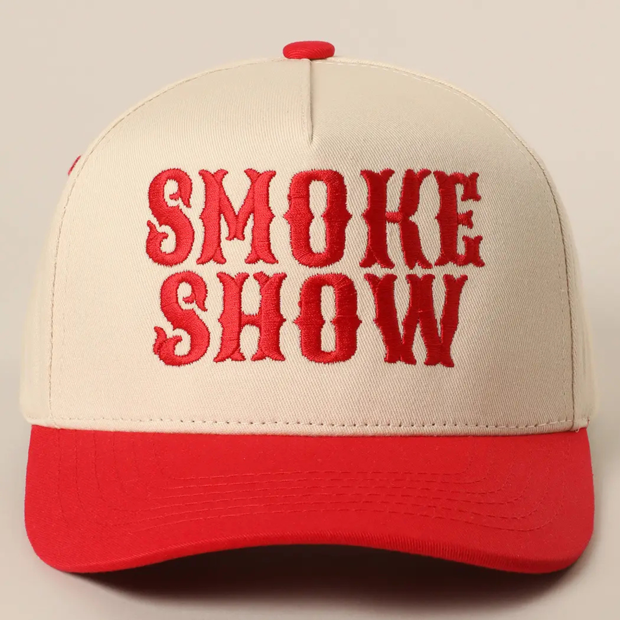 Step up to the plate with serious style in this Smoke Show Embroidery Baseball Cap. Bold embroidered lettering makes a statement whether you're catching games, running errands, or just looking effortlessly cool. The classic baseball cap silhouette pairs timeless appeal with modern attitude—perfect for anyone who knows how to turn heads. Adjustable fit keeps you comfortable all day long, making this a go-to essential for your everyday rotation.