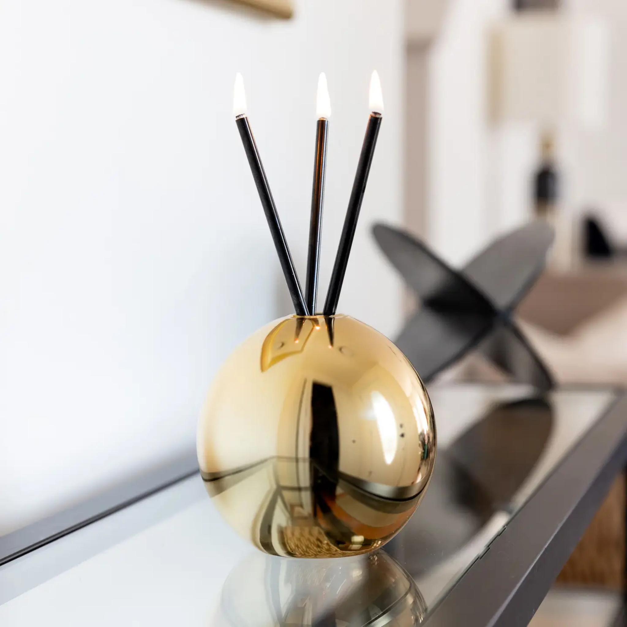 The Gold Metallic Neva stands as a bold statement piece, destined to be the talk of the room with its eye-catching shimmer and sleek allure. It has a minimalistic yet bold and beautiful presence. Crafted from hand-blown borosilicate glass, this vase is designed to hold Pristine Oil® and Everlasting Candle sticks (both sold separately) to complete the timeless candlelight experience.