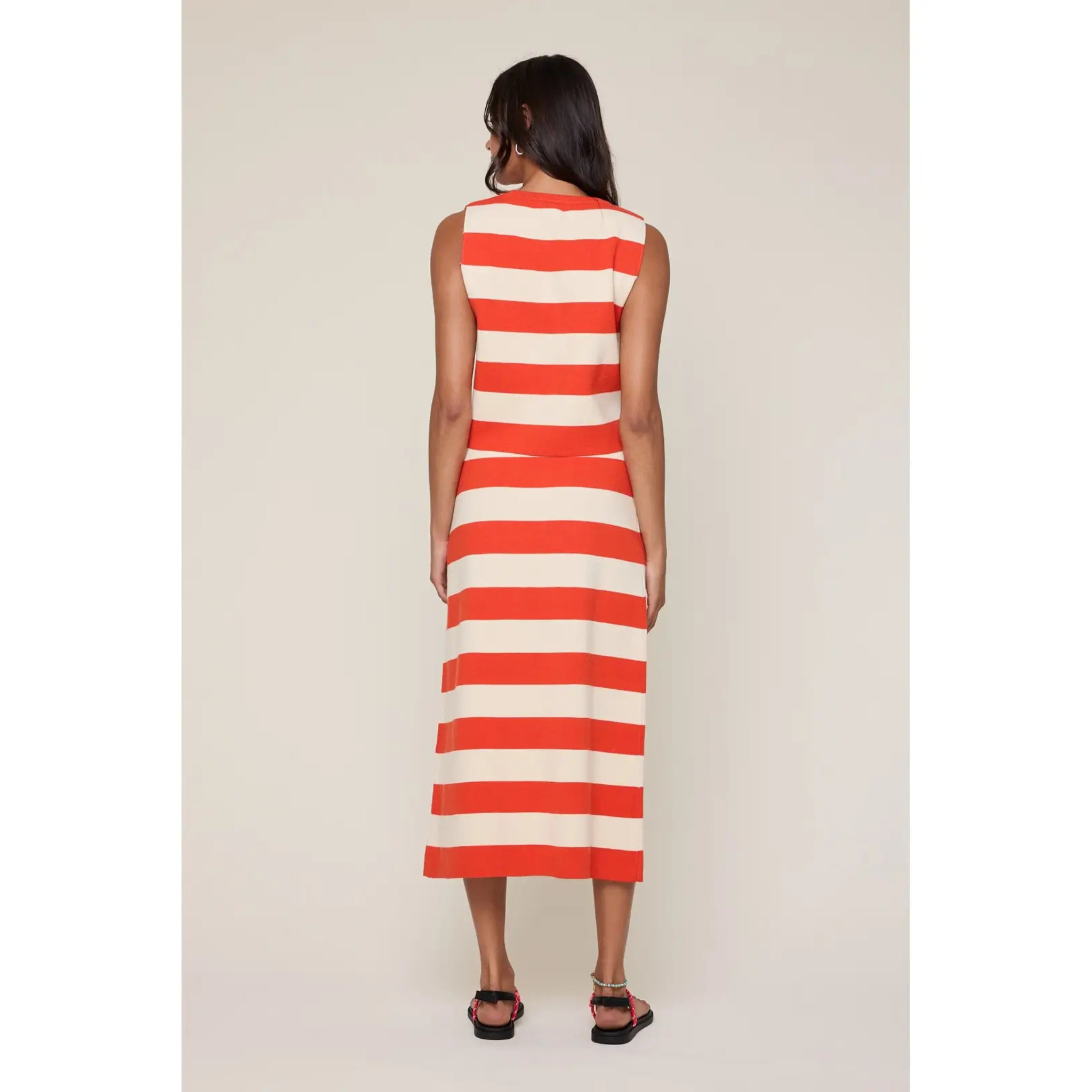Grab this striped two-piece and embrace effortless coastal vibes. The relaxed crop top pairs perfectly with the elastic-waist bottoms for a look that's as laid-back as a seaside afternoon. Sleeveless and round-necked for maximum breeze, this set keeps you cool whether you're catching sunset views or grabbing lunch with friends. Lightweight, comfortable, and ready for any warm-weather adventure. (Small: 32" total length)