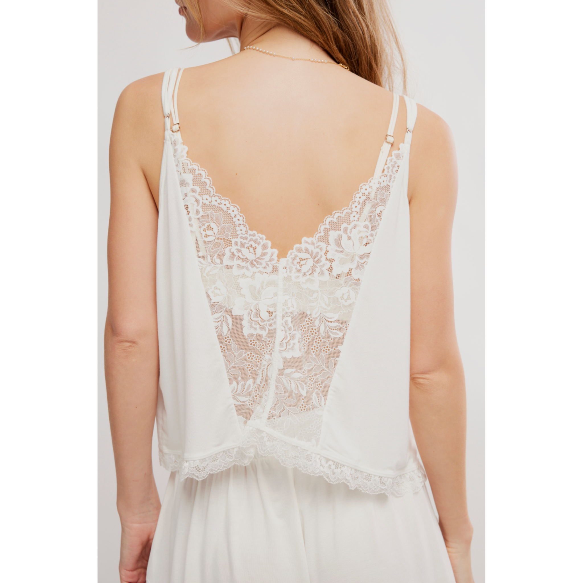 Femme meets versatile with this silky set from Intimately, featuring sweet pull-on shorts and a little tie-front cami with lace trim throughout for a delicate accent.