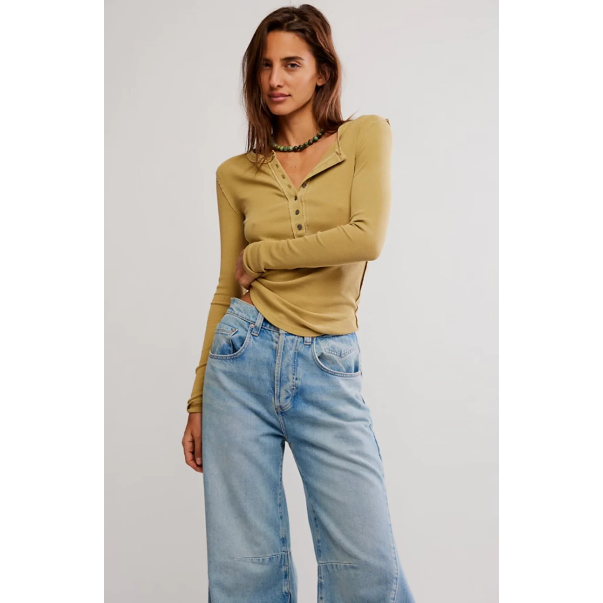 The long-sleeve you can wear with absolutely everything. This henley from our We The Free collection features a soft cotton fabrication and slim-fitting silhouette with defined seams and button closures.