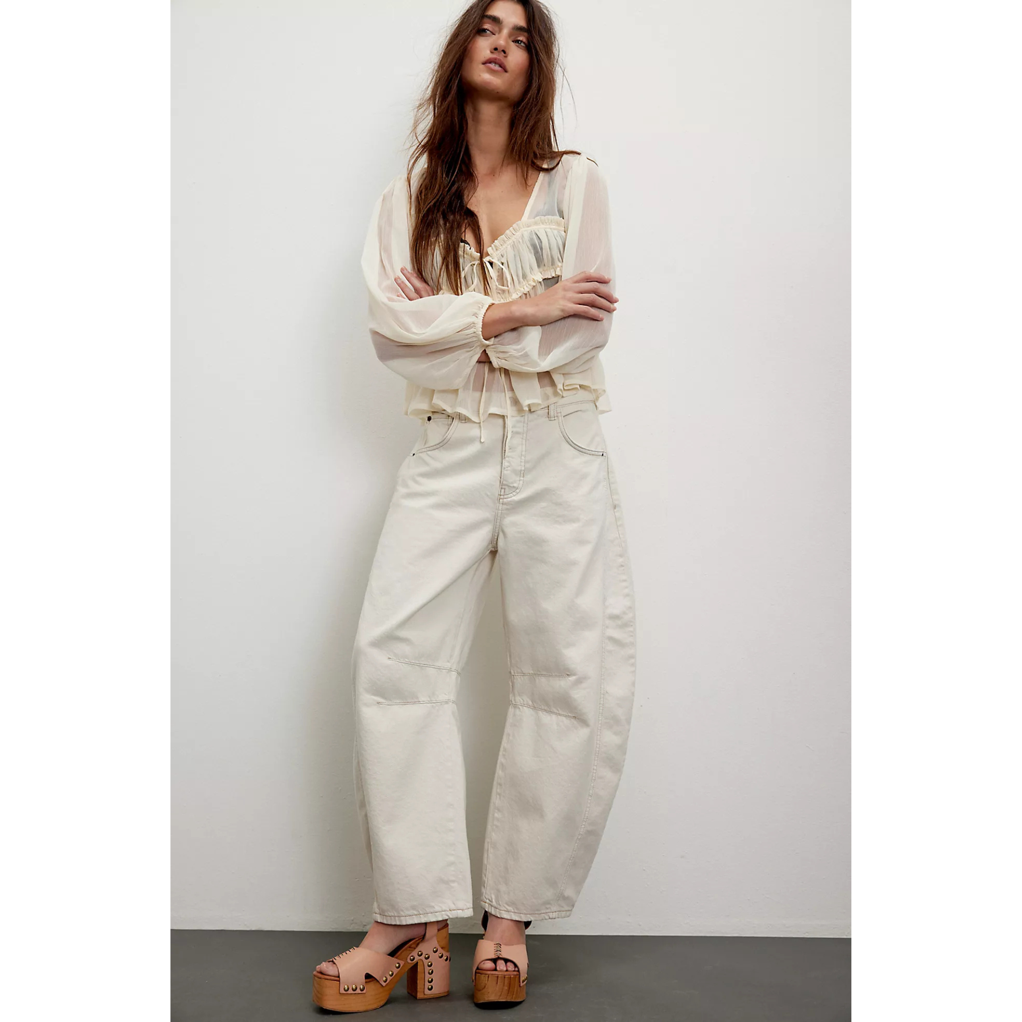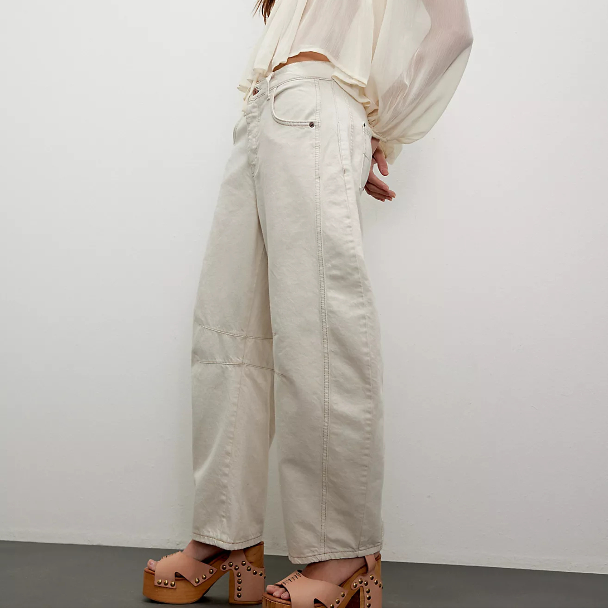 So bold barrel jeans from our We The Free collection featured in a mid-rise fit with subtle distressed detailing and wide-legs that taper at the ankle.